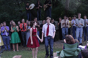 The King of Navarre embarks on a course of study with his three companions and a pretty tough list of Do's and Don'ts. One item on the list is NO WOMEN, but the Princess of France is on her way with three of her lady companions to take up a state matter with him. Afraid of being mocked for breaking rules, the King houses her and her entourage in a field outside the castle. The four men proceed to individually woo their ladies while maintaining their reputations. Trouble is ahead here too!