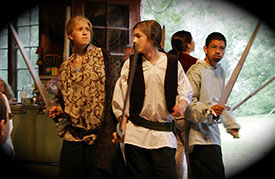 Lucy seems a simpleton, but in fact is making money off of everyone as she carries letters back and forth. Indeed, Lydia Languish has many suitors that require careful attention. Mr. Acres pays Lucy as his courtier, but she never shows his letters to Lydia. Mr. Lucius O'Trigger also has Lucy in his pay to deliver letters to Ms. Languish, but all those letter have been delivered to Ms. Malaprop, who corresponds with Sir Lucius under the assumed name of Deliah! This non-Shakespearan play is the must-see play of the summer.